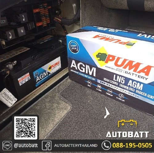 เปลี่ยนแบตเตอรี่พร้อมกัน 2 ลูก ติดตั้งแบตเตอรี่แห้ง PUMA AGM LN5 ความจุ 95 Ah | CCA(EN) : 850 | ขนาด DIN 100Ah แบตเตอรี่ขั้วจม เหมาะกับรถยุโรป อย่าง Audi, Benz, Mini, BMW, Posche, Volkswagen พูม่าแบตเตอรี่ แบตเตอรี่เทคโนโลยีเยอรมนี และ ติดตั้งแบตเตอรี่แห้ง 3K Battery SVXLN1 ความจุ 50 Ah | CCA(EN) : 400